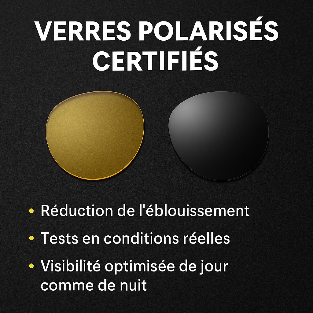 Nos verres polarisés sont testés en conditions réelles pour garantir une protection optimale. Ils réduisent considérablement l’éblouissement, offrent une vision nette et préservent vos yeux de la fatigue visuelle, de jour comme de nuit.